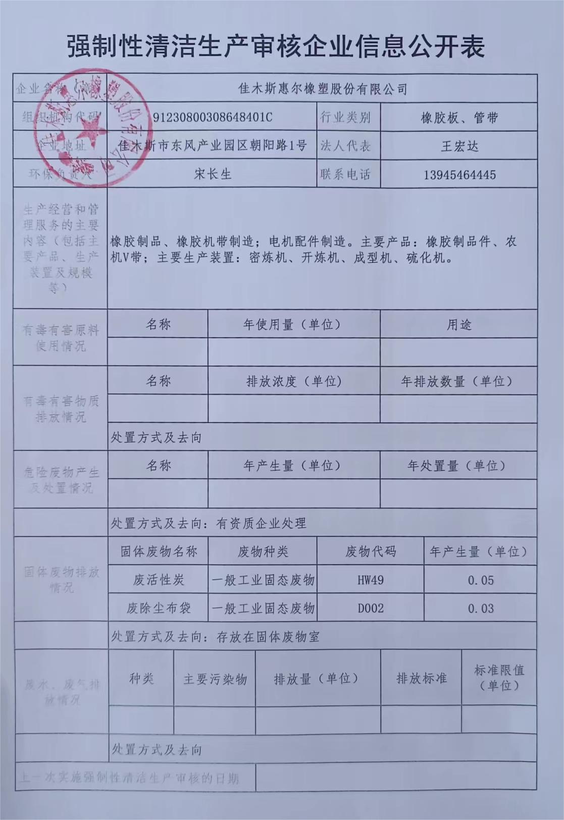 2024年度強(qiáng)制性清潔生產(chǎn)審核企業(yè)信息公示